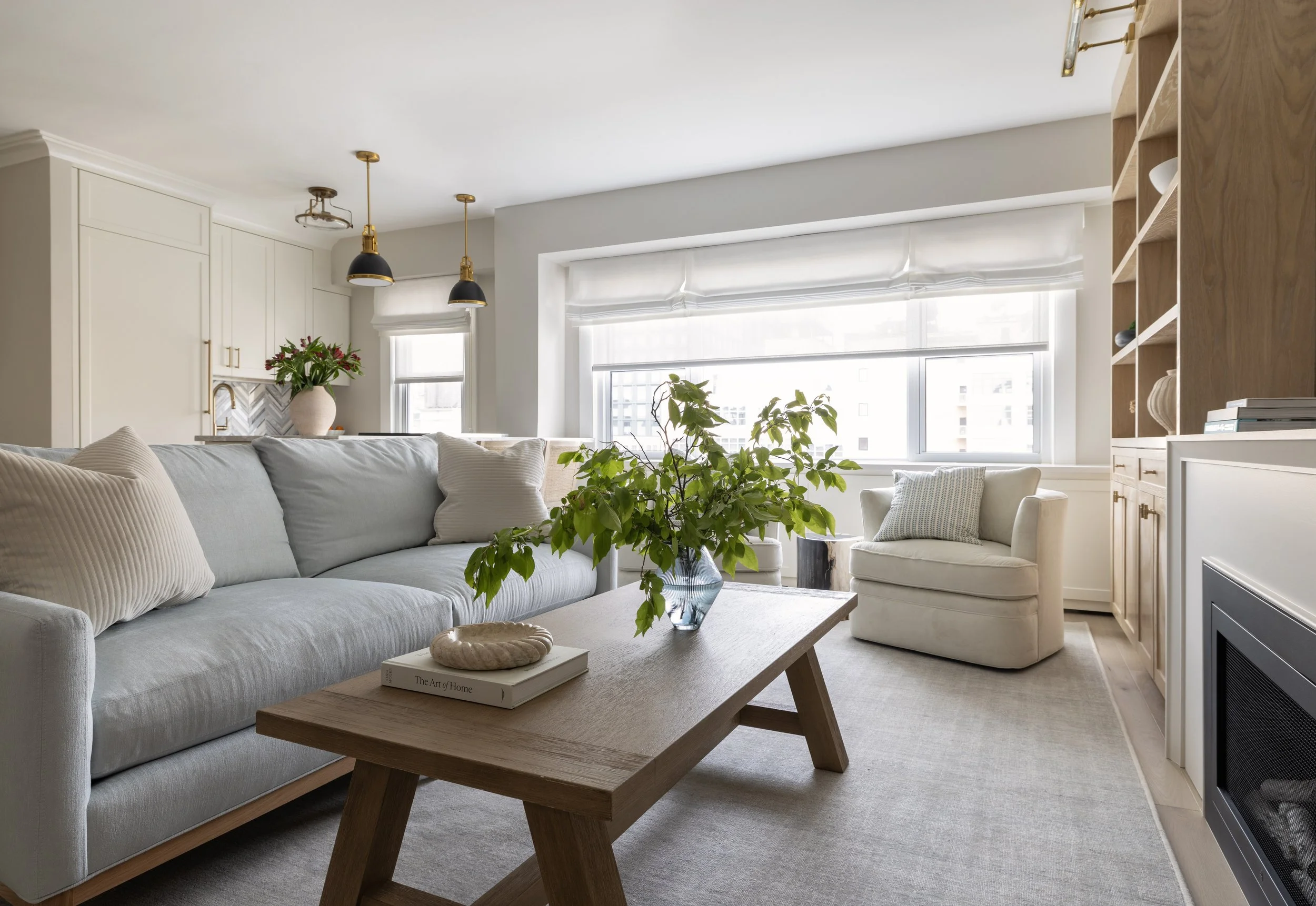 This NYC apartment embodies a refined transitional style designed for both comfort and elegance. Warm wood tones, layered textures, and subtle blue accents come together to create a space that feels both inviting and sophisticated.